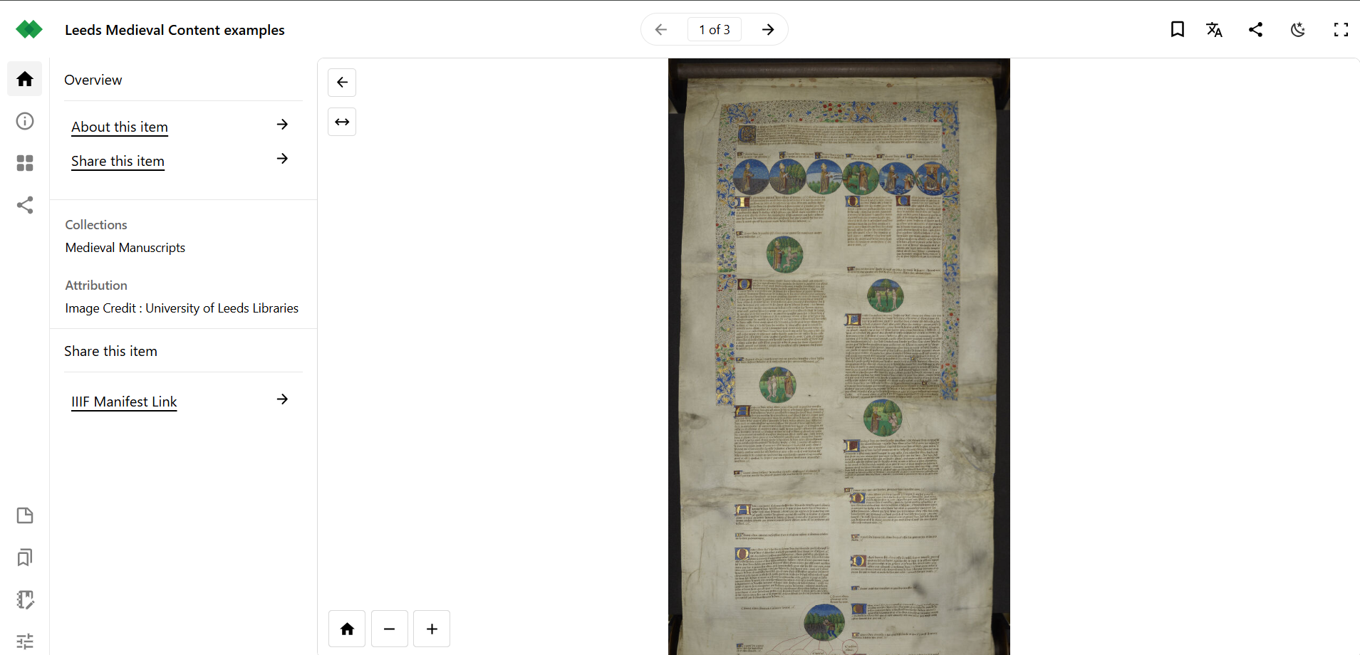 - Using the IIIF Browser option, you can navigate through the Leeds Medieval Collection again to find an item of interest to add