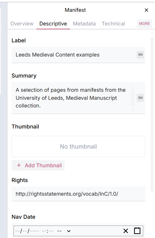 - Click the "Descriptive" tab on the detailed metadata information in the right hand panel